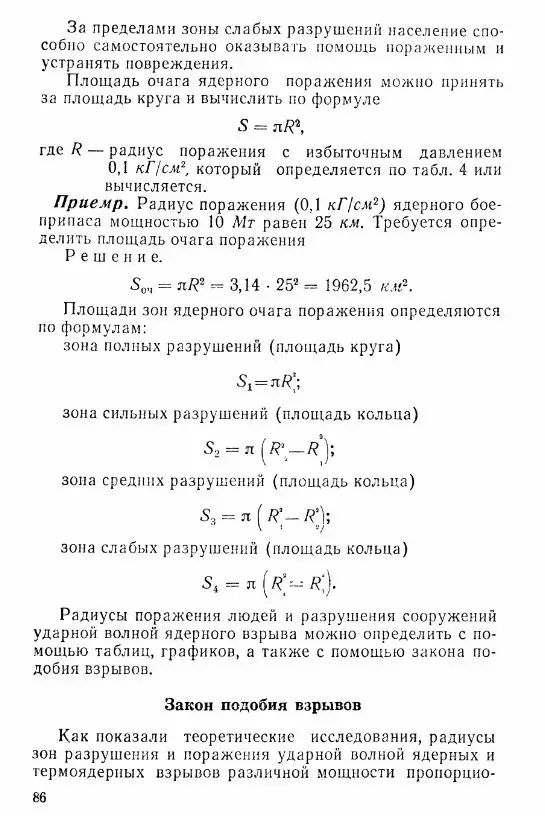And finally, the most important thing. According to P.T. Yegorov et al., "Civil Defense," the area of a nuclear strike is considered a circle and is calculated using the formula: